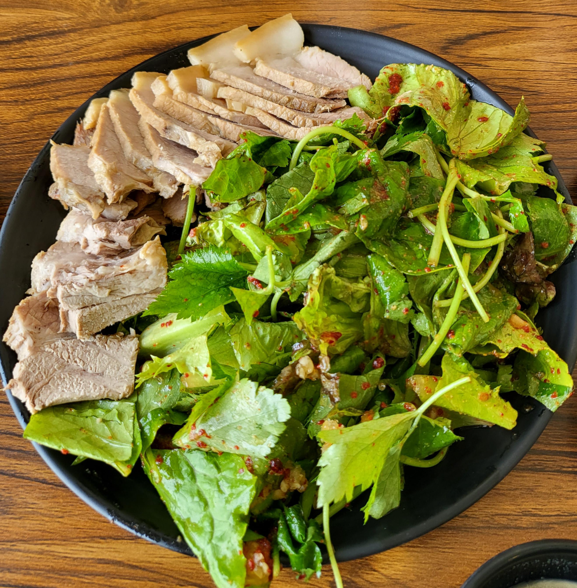 저는 막국수 2(곤막, 들막) + 수육(맛보기) + 메밀떡만두국 이렇게 시켰습니다.
