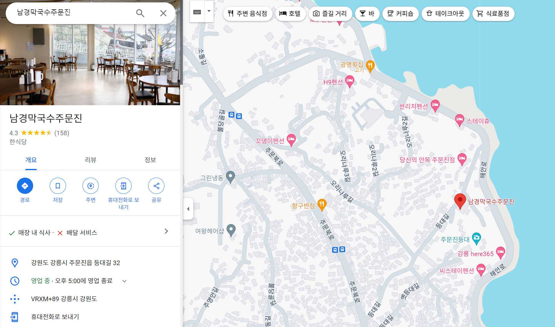 제가 간 곳은 남경막국수 주문진지점이었는데 통창이라 뻥 뚫린 뷰였고