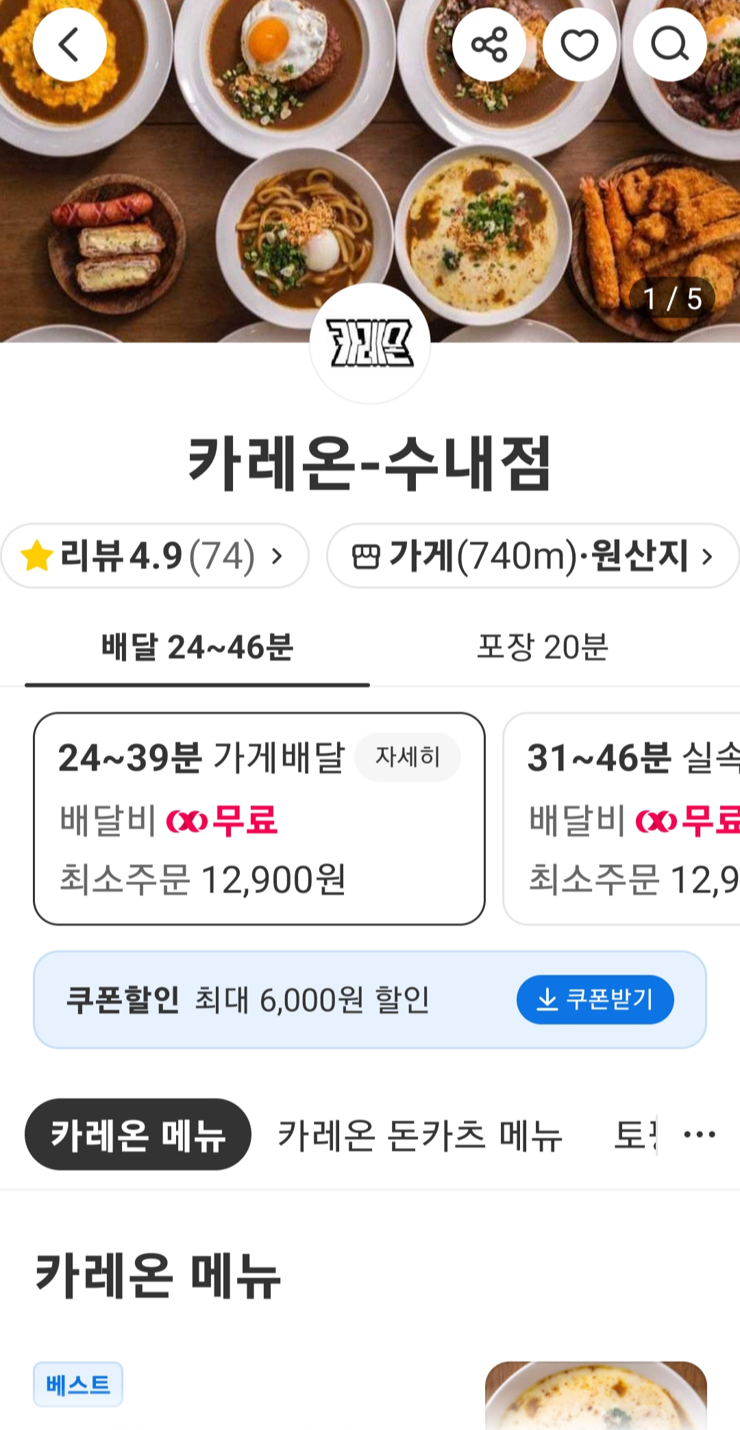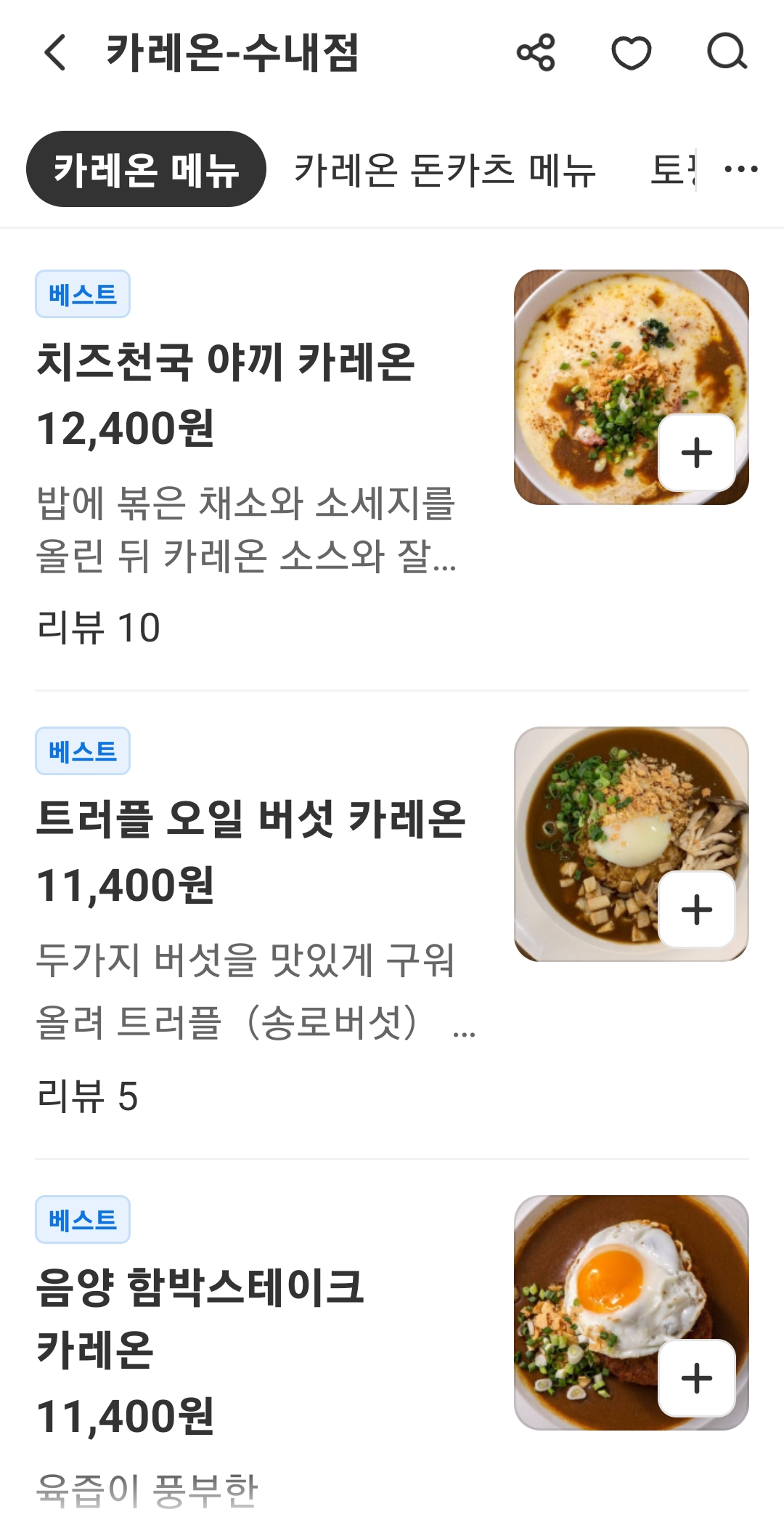 여기선 치즈천국 야끼 카레온, 풍미 우삼겹 카레온 시켰습니다.