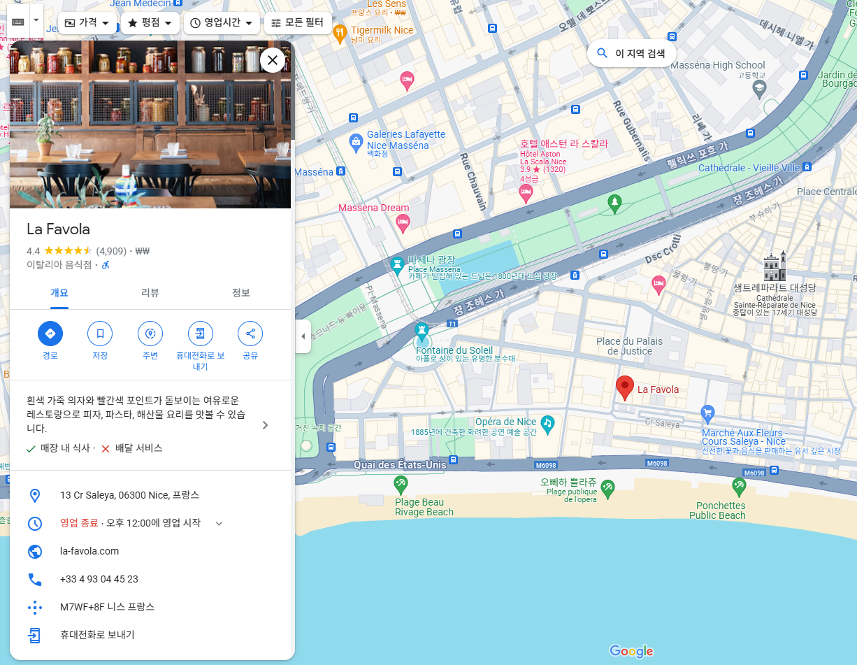 프랑스 니스 음식점 추천 : La Favola