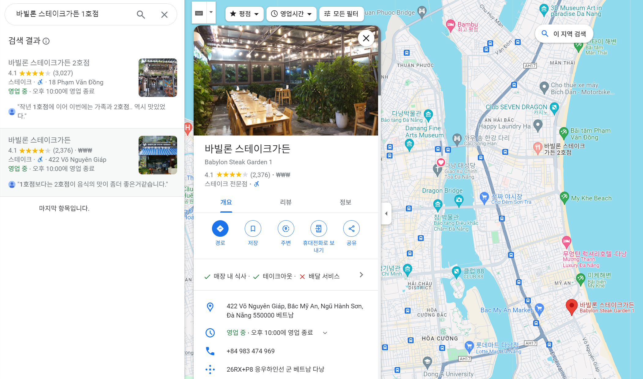 베트남 로컬 음식 말고 다른거 먹고 싶을 때 바빌론 스테이크가든 괜찮은것 같습니다.