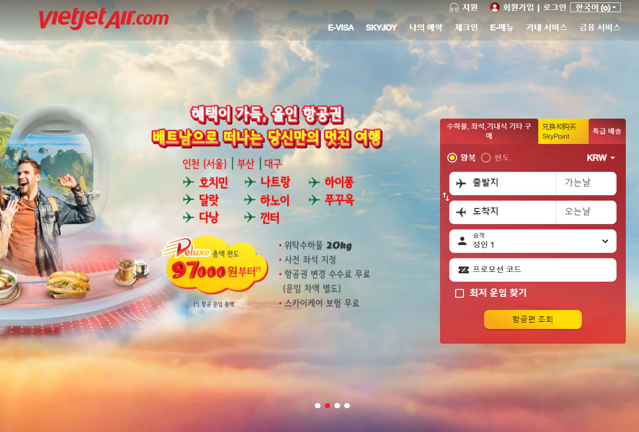 비엣젯항공은 베트남으로 여행 갈 때 가성비 항공사로 유명하죠.