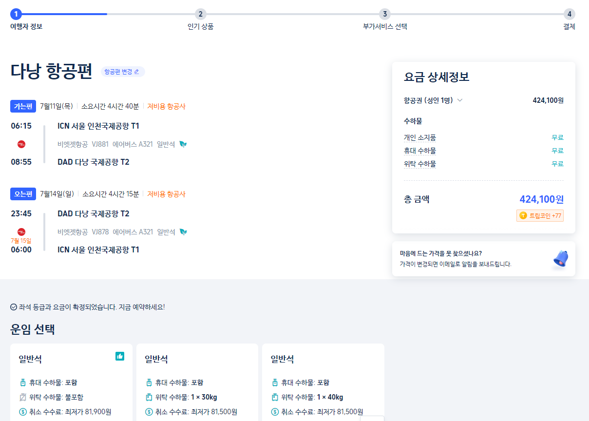 심지어 비엣젯공홈에선 갈 때, 올 때 수하물 따로 추가가 가능합니다.