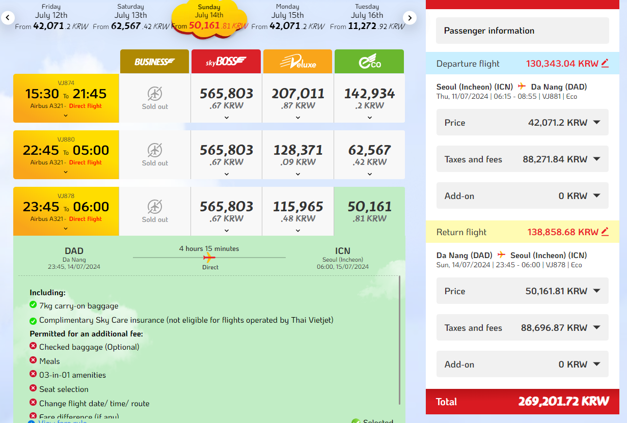 비엣젯공홈에서 항공권 예약하기! 조금의 번거로움은 있지만, 한 번쯤 시도해 볼 만하다고 생각합니다!