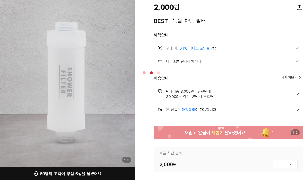 많은 제품들 중 이렇게 고른 이유는... 샤워 헤드에 볼이 있어 필터에서 거르고 헤드에서 한번 더 걸러줄 것 같은 단순한 믿음 때문입니다. 허허