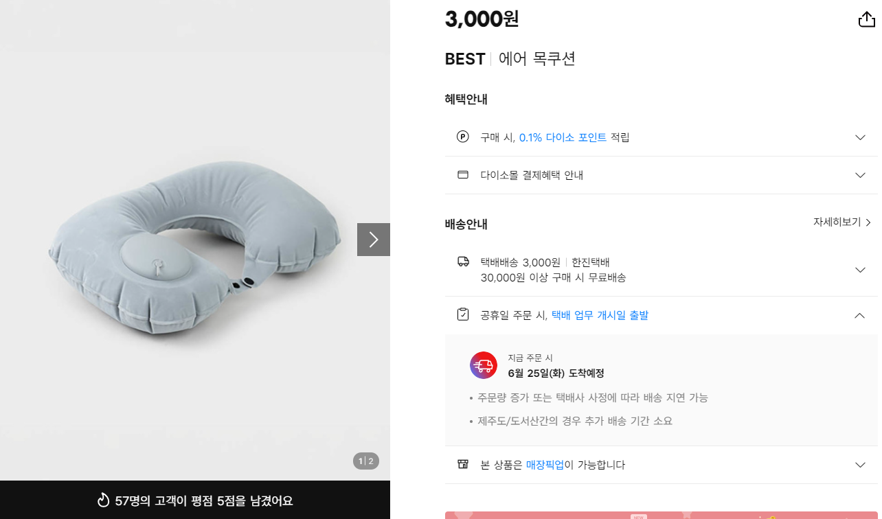 다이소에서 정확한 명칭은 에어 목쿠션이네요.
